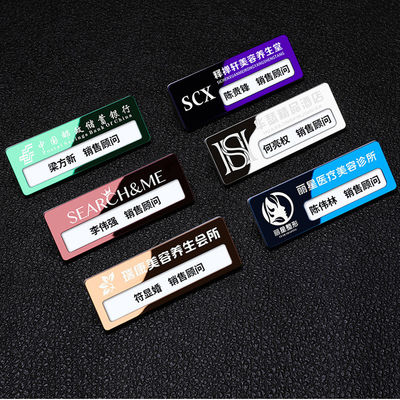 εργασίας. Η εταιρεία μας παράγει προσαρμοσμένη επιγραφή ονόματος από ανοξείδωτο χάλυβα με λογότυπο, αντικαταστάσιμο ένθετο Premium